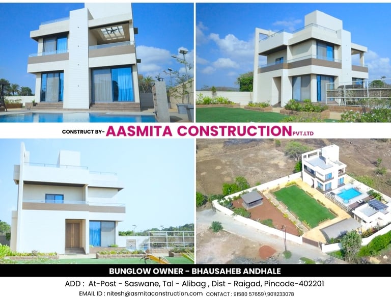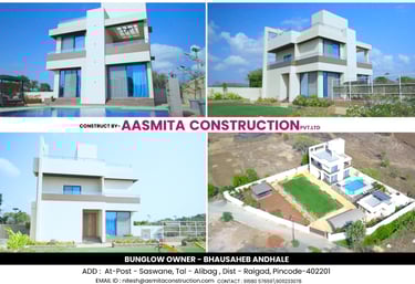 Aasmita Construction Pvt. Ltd. is a leading builder and developer in the Alibag–Raigad region, specialising in premium residential projects, farmhouse developments, and turnkey construction. Founded on principles of quality, transparency, and timely delivery, we have built over 80 projects across coastal Maharashtra.